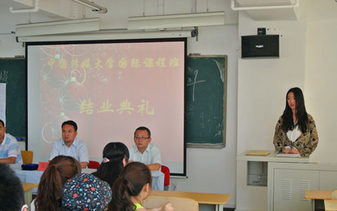 5月31日早上十点,中国传媒大学2012级国际本科班(1+3)结业典礼在3号楼多功能教室举行,中国传媒大学培训学院副院长邹细林,培训五部舒鹏翼主任出席,中国传媒大学国际班部分老师代表以及部分2012级学生参加了结业典礼。